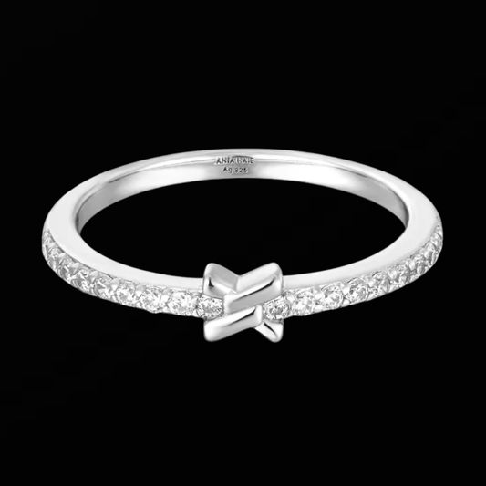 Silver Bezel Cubic Zirconia Zig-Zag Ring