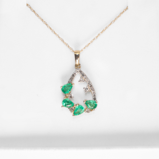 14K Yellow Gold 1.6G Diamond Emerald Necklace