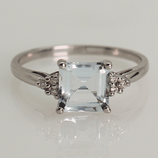 14KWG Aquamarine Emerald Cut Diamond Ring