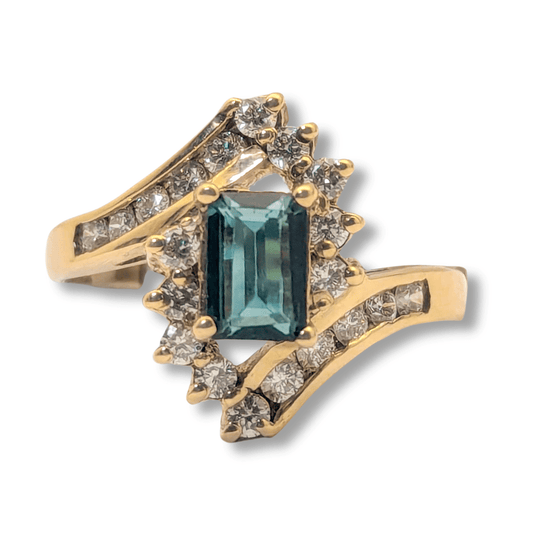 14K Yellow Gold Green Tourmaline & Diamond Ring
