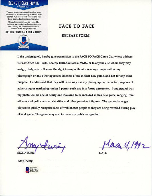 Face to Face Board Game Celebrity Autograph - Amy Irving
