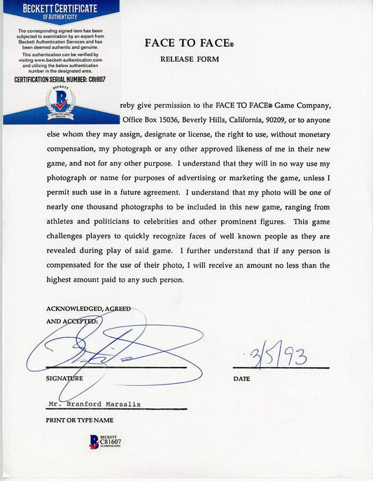 Face to Face Board Game Celebrity Autograph - Branford Marsalis