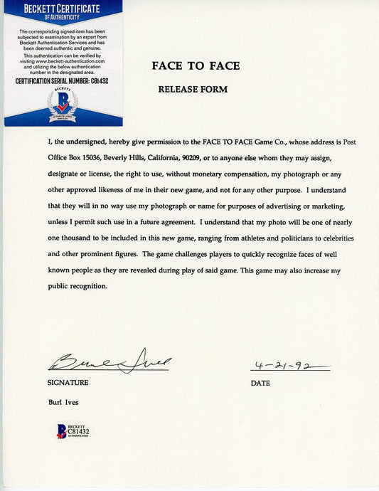 Face to Face Board Game Celebrity Autograph - Burl Ives