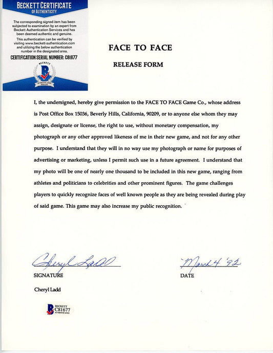 Face to Face Board Game Celebrity Autograph - Cheryl Ladd