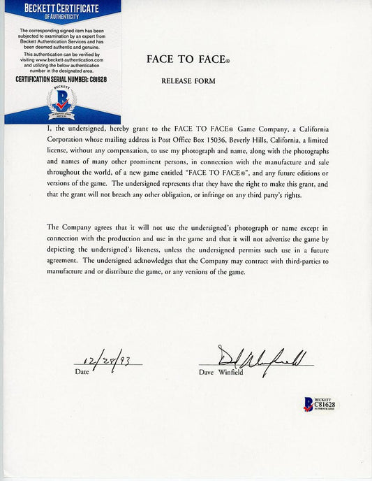 Face to Face Board Game Celebrity Autograph - Dave Winfield