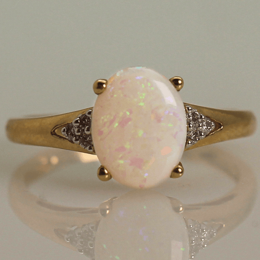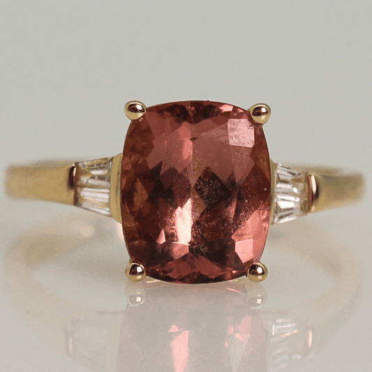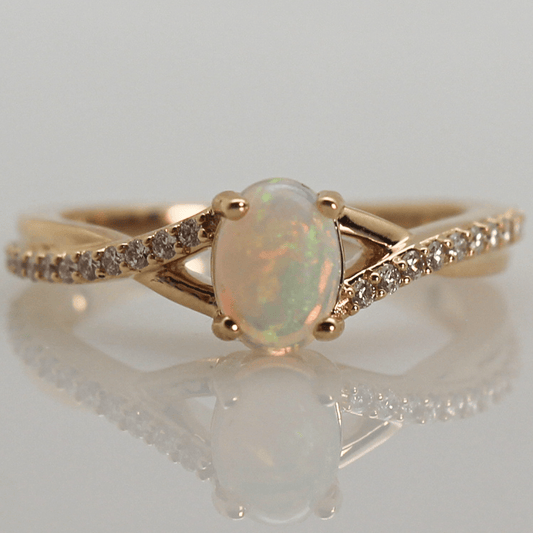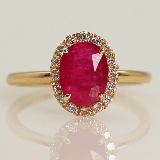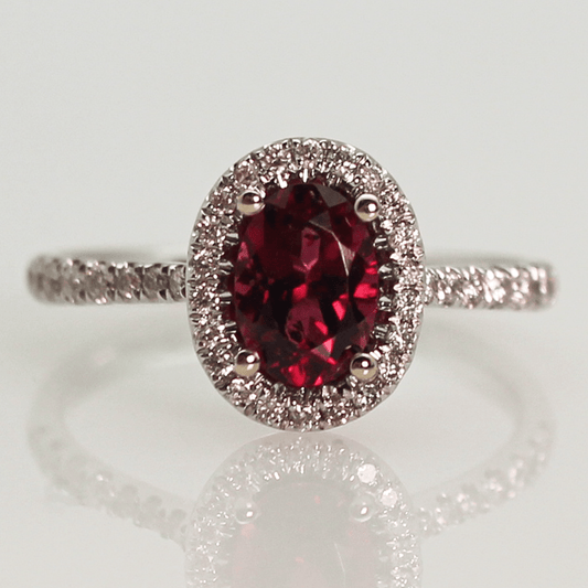 14kYG Oval Shaped Pink Gemstone Diamond Halo Ring