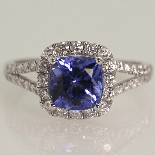 14KWG Cushion-Cut Amethyst Gemstone Ring