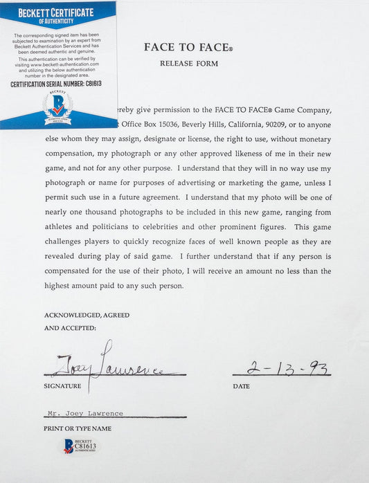 Face to Face Board Game Celebrity Autograph-Joey Lawrence
