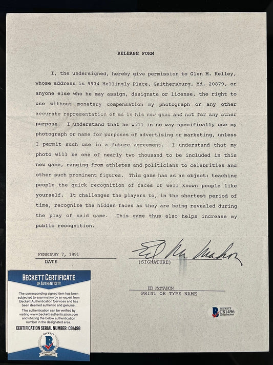 Face to Face Board Game Celebrity Autograph- Ed McMahon