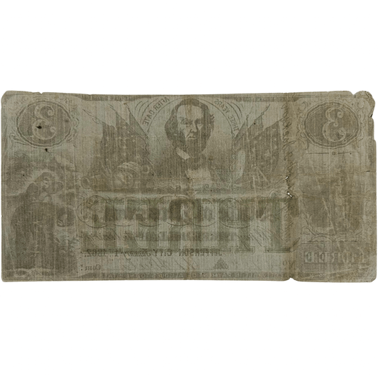 1862 Jefferson City State of Missouri $3 Note