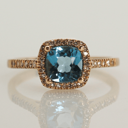 10KWG Blue Topaz Diamond Halo Ring