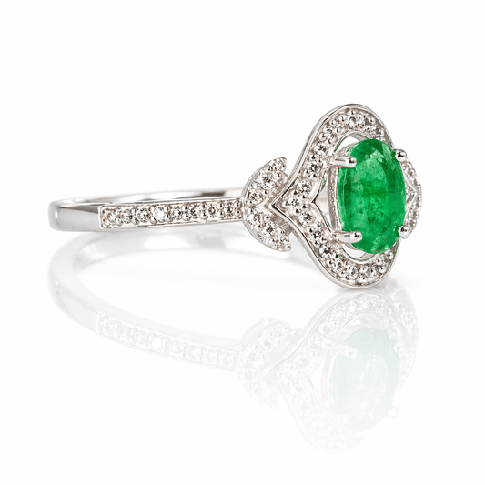 Oval Emerald & Diamond Accent Ring .40CT Emerald