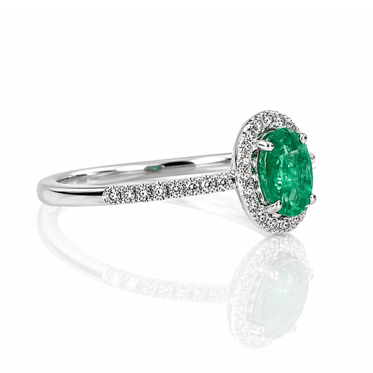Emerald & Diamond Halo Ring .47CT Emerald