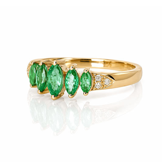 Emerald & Diamond Band Ring .60CTW Emeralds