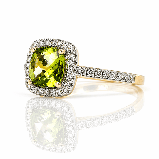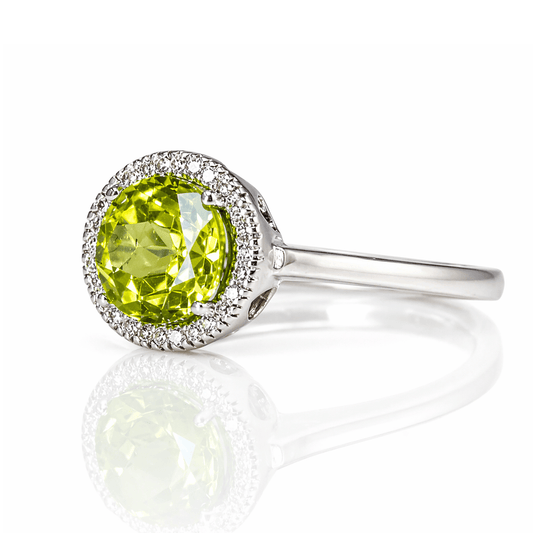 Peridot & Diamond Halo Ring 1.32CT Center