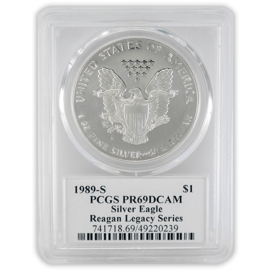1989-S $1 PCGS PR69DCAM Silver Eagle Cameron Reagan Label
