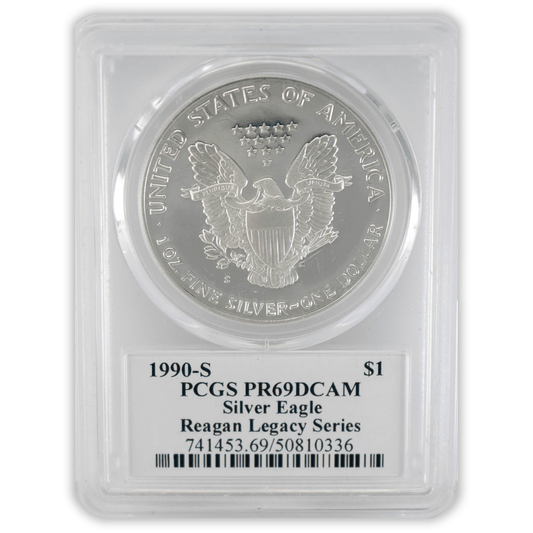 1990-S $1 PCGS PR69DCAM Silver Eagle Cameron Reagan Label
