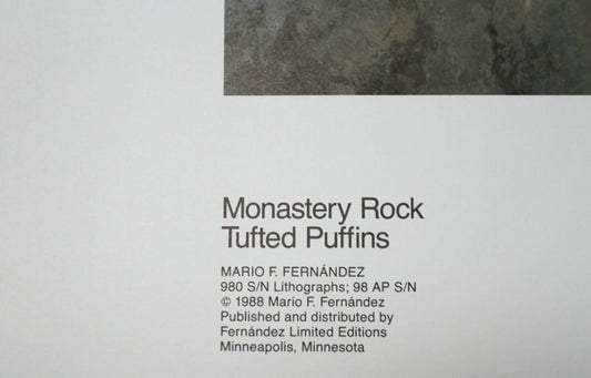 Mario F Fernandez; "Monestary Rock - Tufted Puffins"