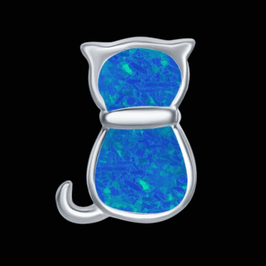 Sterling Silver Mosaic Opal Cat Pendant Necklace