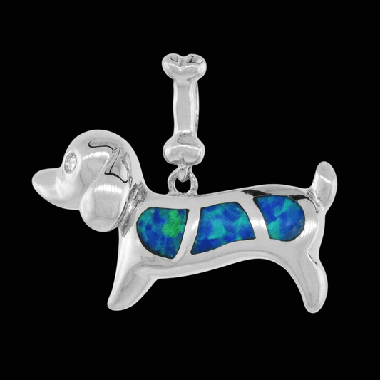 Sterling Silver Mosaic Opal Dachshund Pendant Necklace