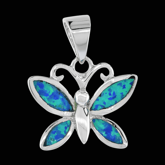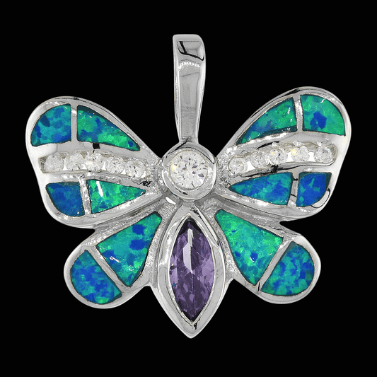 Sterling Silver Mosaic Opal Butterfly Pendant