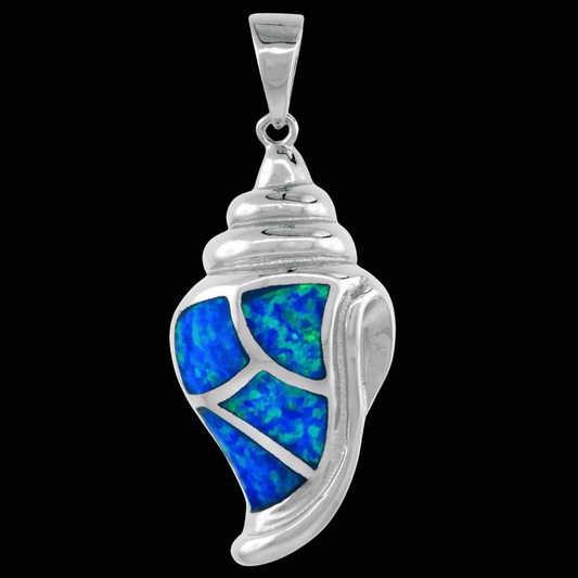 Sterling Silver Mosaic Opal Conch Shell Pendant
