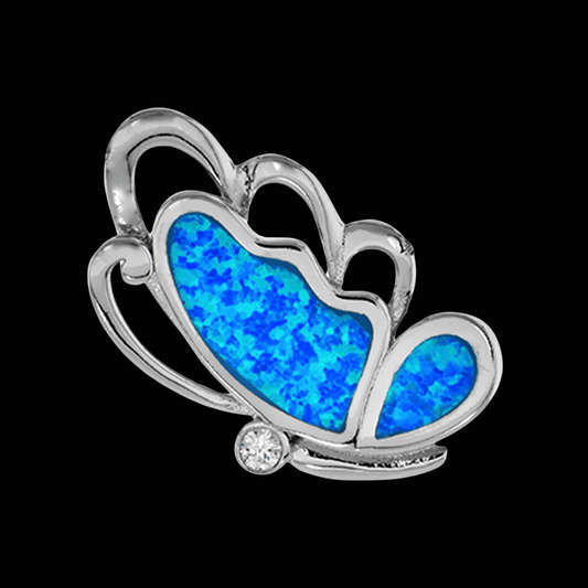 Sterling Silver Mosaic Blue Opal Sideways Butterfly Pendant