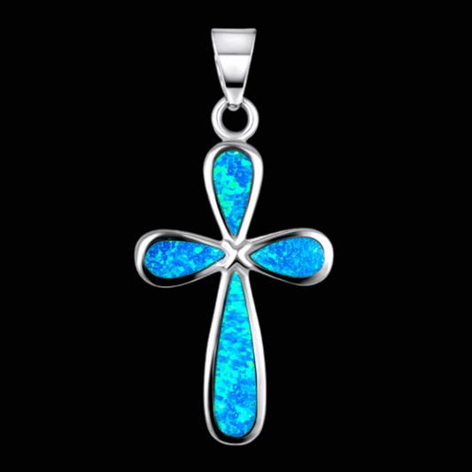 Sterling Silver Mosaic Opal Cross Pendant Necklace