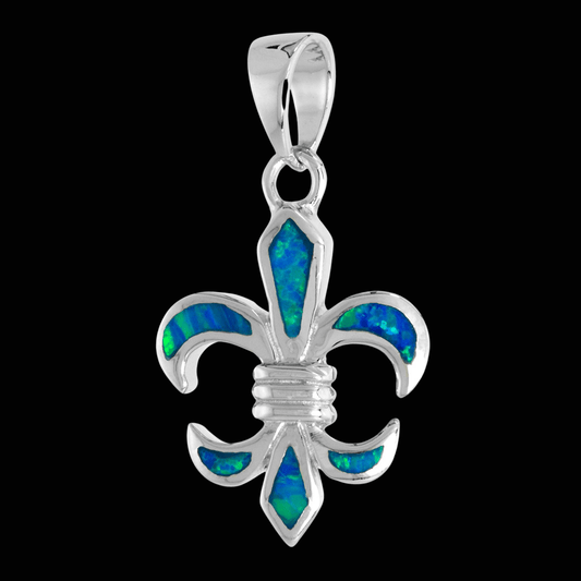 Sterling Silver Mosaic Opal Fleur de Lis Pendant