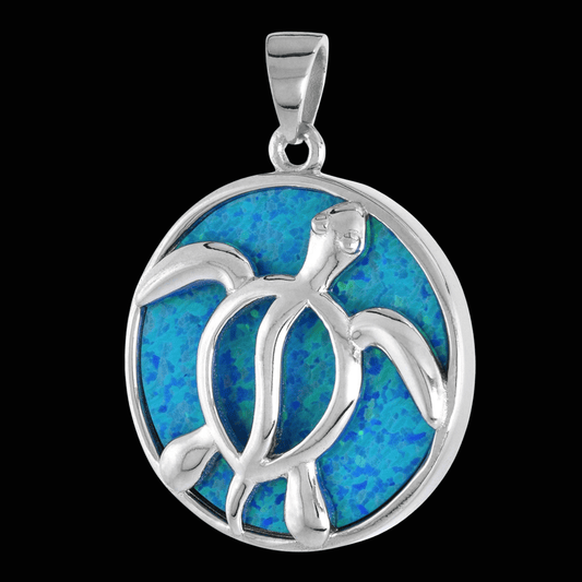 Sterling Silver Mosaic Opal Hawaii Honu Sea Turtle Pendant