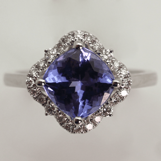 14K Cushion-Cut Tanzanite Halo Diamond Ring