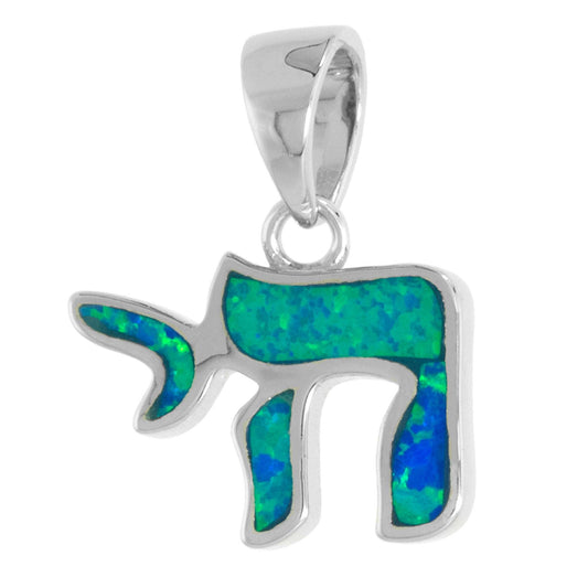 Small Sterling Silver Mosaic Opal Chai Pendant