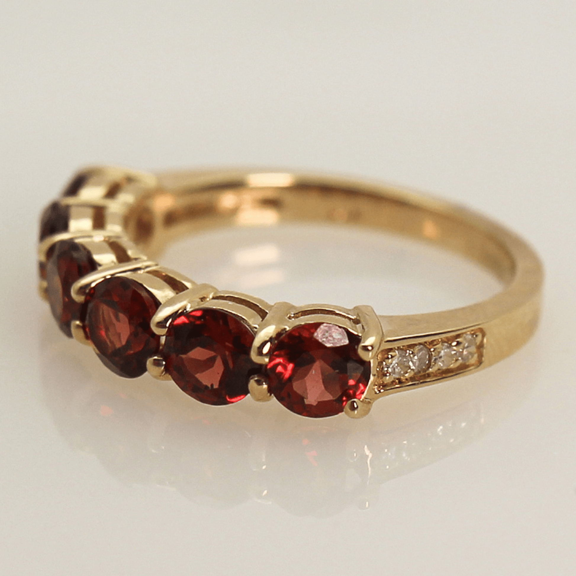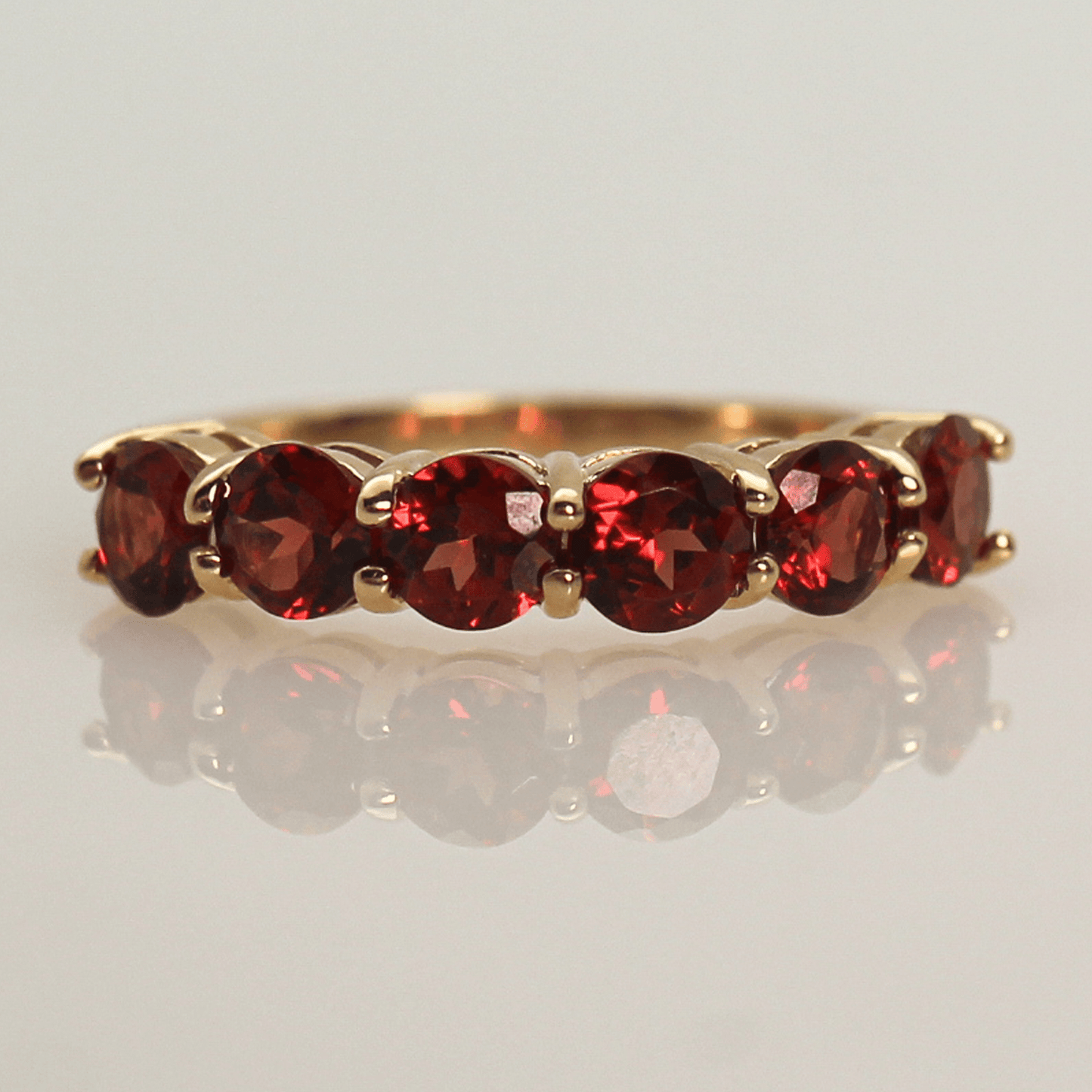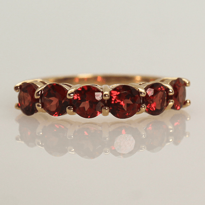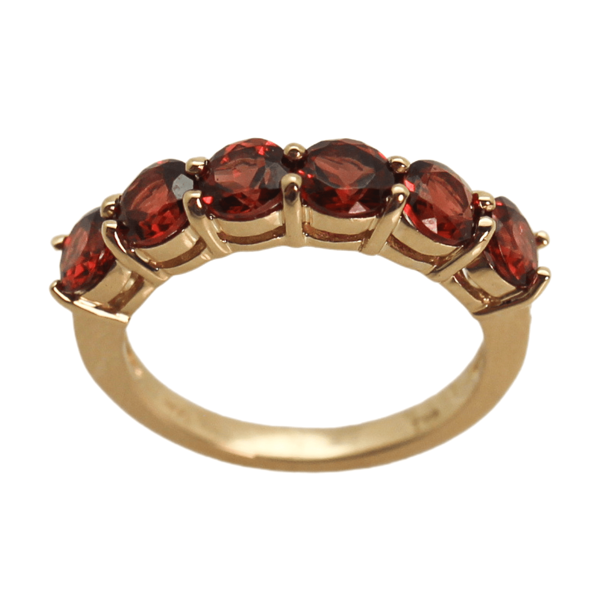 Discover the elegance of this 14K round cut garnet ring featuring six stunning gems. The deep, rich red hues of the garnets are beautifully complemented by the classic round cut, which enhances their brilliance and sparkle. Set in durable 14K gold, this ring not only showcases the captivating fire of the garnets but also offers a timeless and versatile design. Elevate your jewelry collection with this exquisite piece today!