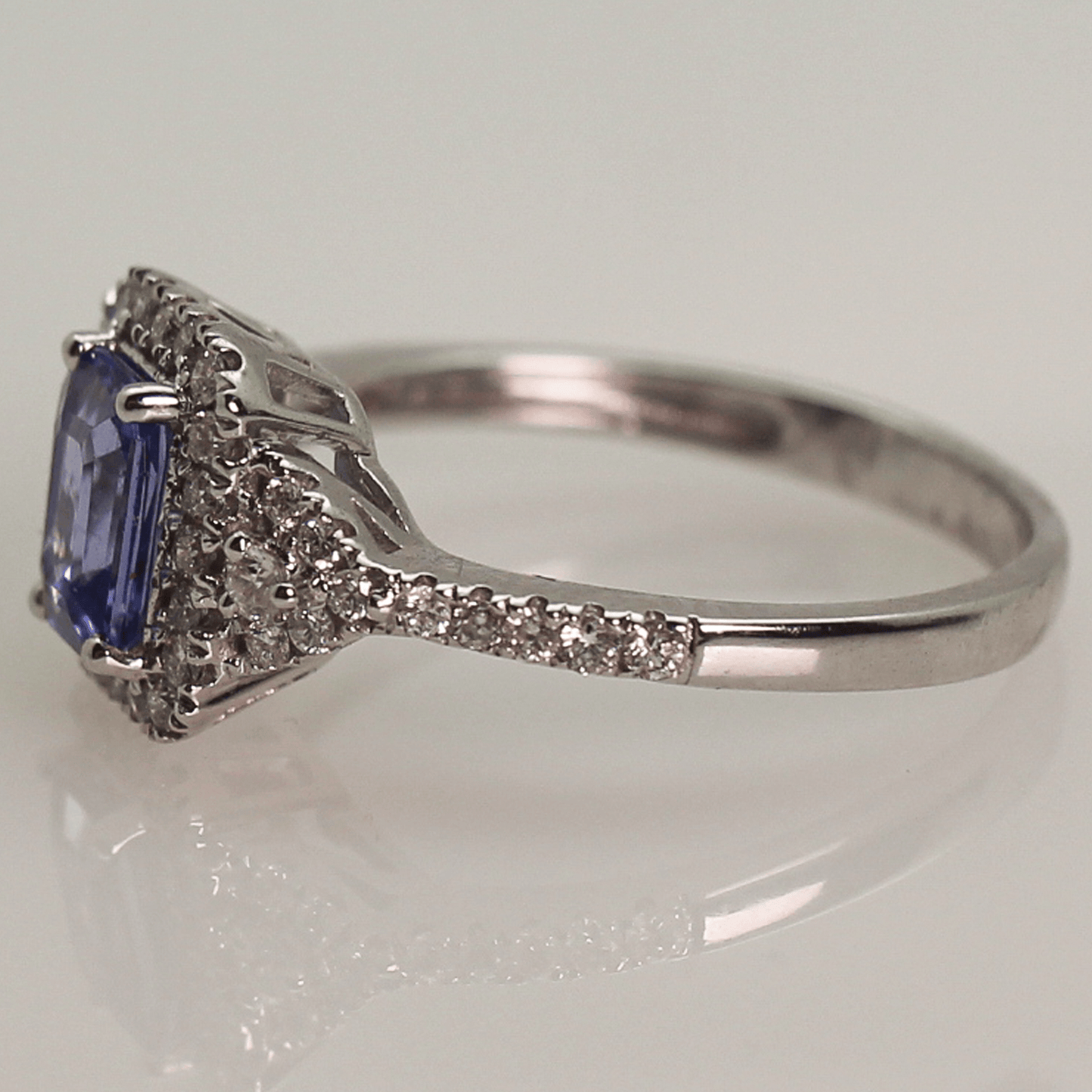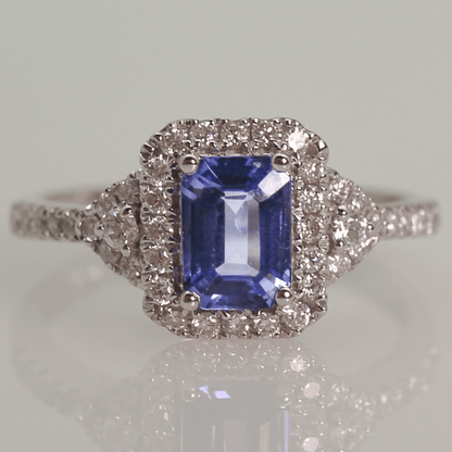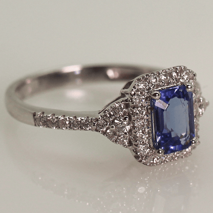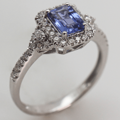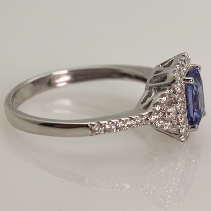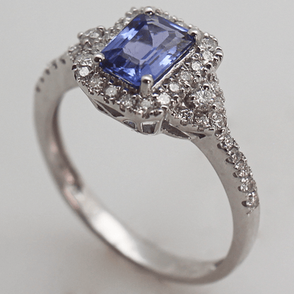 Discover the stunning 14KWG Tanzanite Halo Diamond Ring, a true masterpiece that combines the rarity of Tanzanite with the timeless elegance of a halo design adorned with diamonds. The mesmerizing blue-violet hue of the Tanzanite sets it apart, as it is more precious than diamonds, offering a vibrant splash of color. Encircled by a dazzling array of diamonds, the halo setting amplifies the stone's brilliance, while the 14K white gold band provides a contemporary and sophisticated backdrop. Elevate your jewelry collection with this stunning ring today!