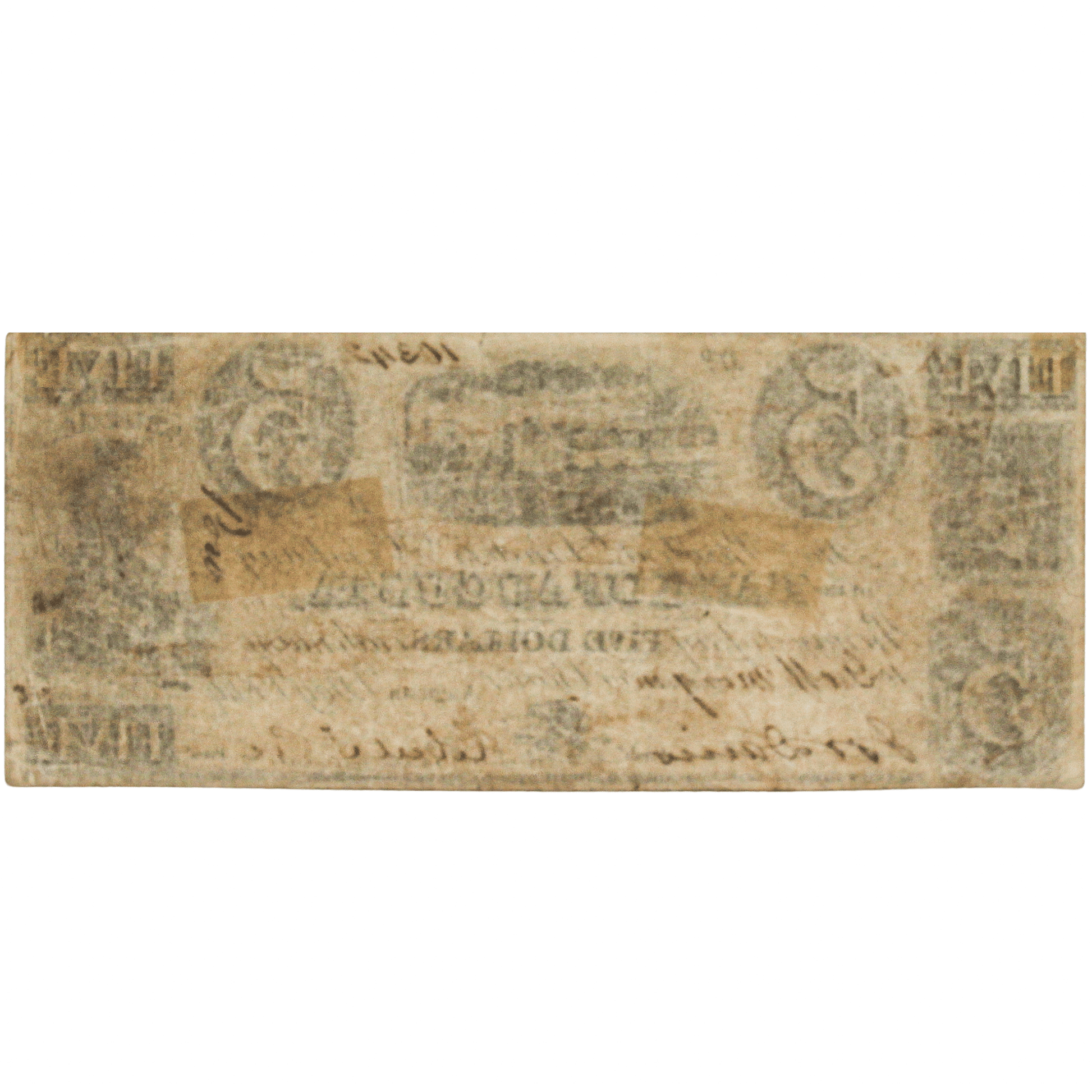This 1849 Bank of Augusta $5 note holds significant historical value due to its rarity and the unique imagery it presents. It serves as a representation of a bygone era of obsolete banknotes in the United States, showcasing distinctive artwork that includes depictions of slave labor. This piece is a remarkable collectible, making it a worthy addition to any collection—consider acquiring it today!