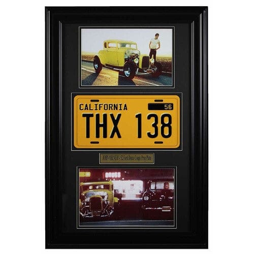 Features two color photos from the movie and an exact replica of John Milner's '32 Ford Deuce Coupe plate. American Graffiti was released in 1973 and starred Richard Dreyfuss, Ron Howard, Harrison Ford, Cindy Williams, and Wolfman Jack.