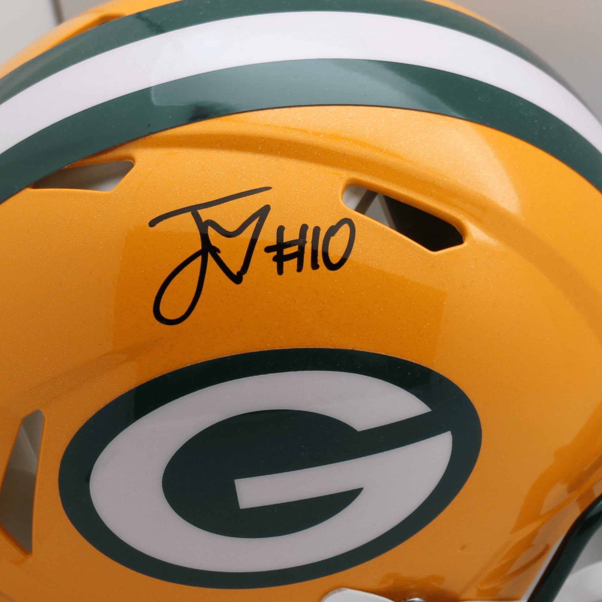 This signed helmet by Jordan Love comes with authentication from RADTKE Sports, making it a valuable piece of memorabilia. It not only symbolizes Love's achievements but also represents the legacy of the Green Bay Packers. Owning this helmet provides a unique connection to the sport and the player. Don't miss the opportunity to add this sentimental item to your collection today!