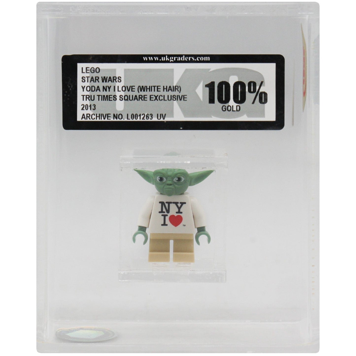 Experience the ultimate crossover with this Lego Yoda "NY I Love" Figurine from 2013. This limited-edition minifigure, exclusively released at Toys"R"Us Times Square, combines iconic Star Wars characters with the beloved city of New York. With a unique design and sought-after collector's item, this figurine is truly one-of-a-kind.