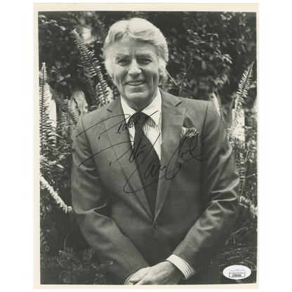 This is a signed photograph of Peter Lawford, with the autograph verified by JSA. The photo includes a JSA Certification Card, ensuring its authenticity. A Peter Lawford autographed photo holds special significance, as it represents not just a celebrity's signature but also a connection to Hollywood's golden age, the allure of the Rat Pack, and the fascinating history of the Kennedy family. Seize the chance to add this remarkable signed photo to your collection today!