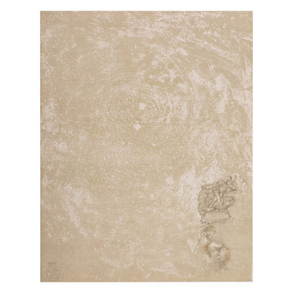 To achieve this he utilized a 15th century musket to shoot bullets of printer’s ink at the stones, leaving chaotic splatters. In other instances, he filled Rhinoceros horns with lithography ink to act as his pen. Some images were further developed with watercolor and collage. These techniques together created truly stunning images that elicit a visceral response to the viewer.