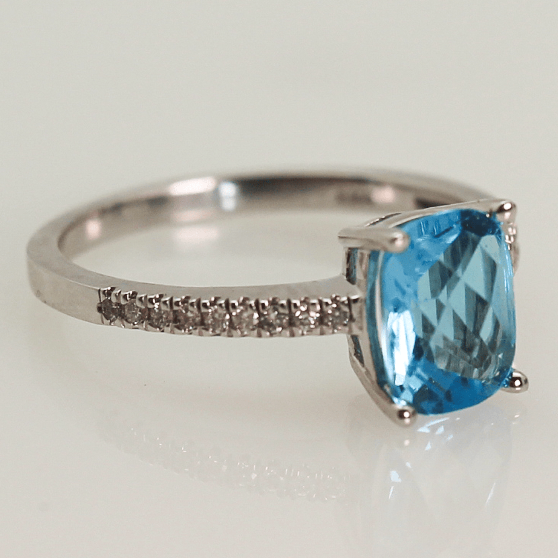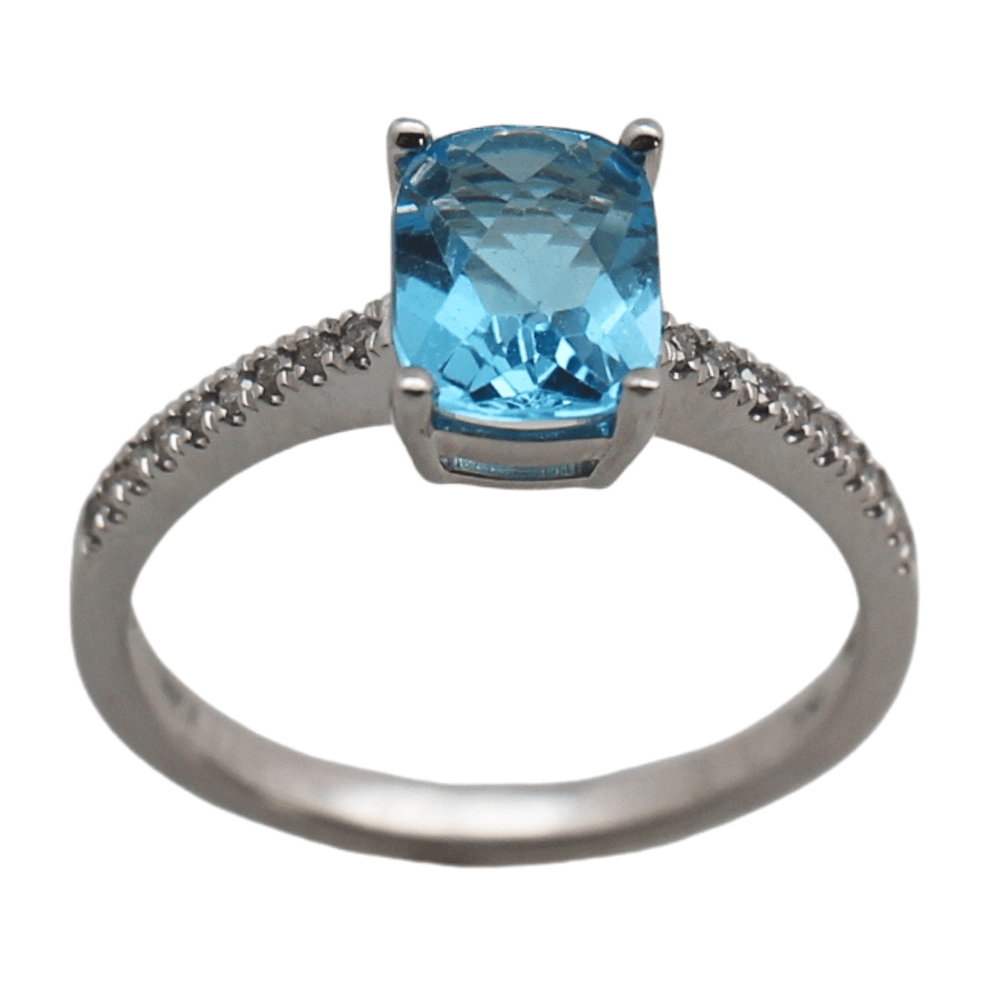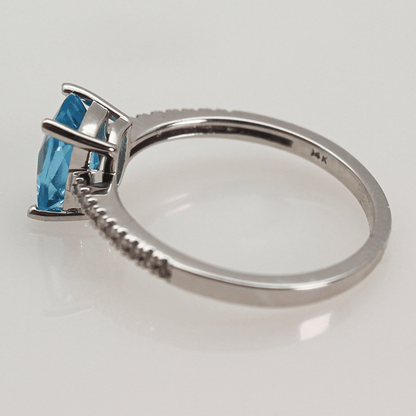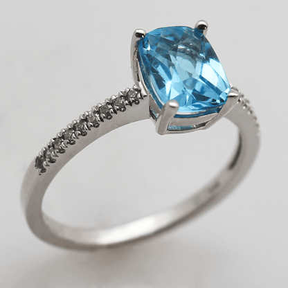 14K Blue Topaz Cushion Rectangular Diamond Ring