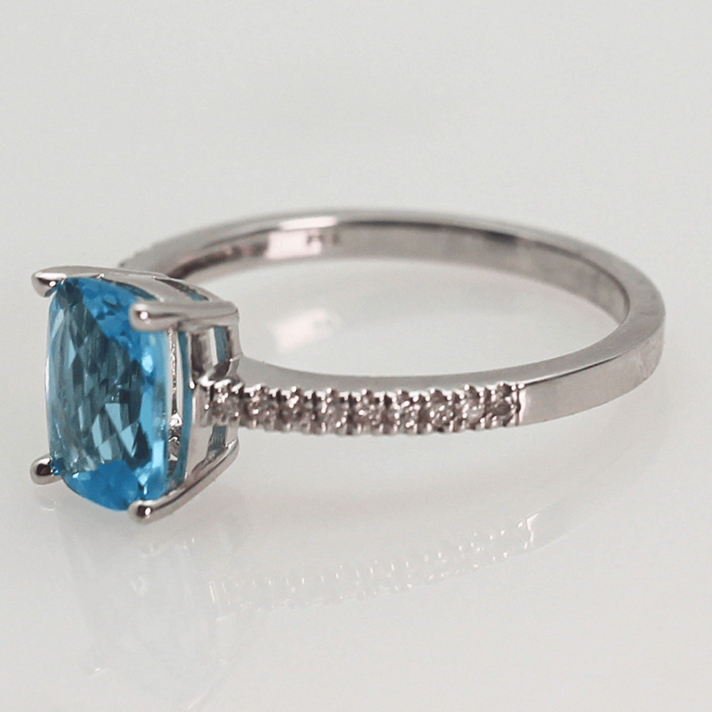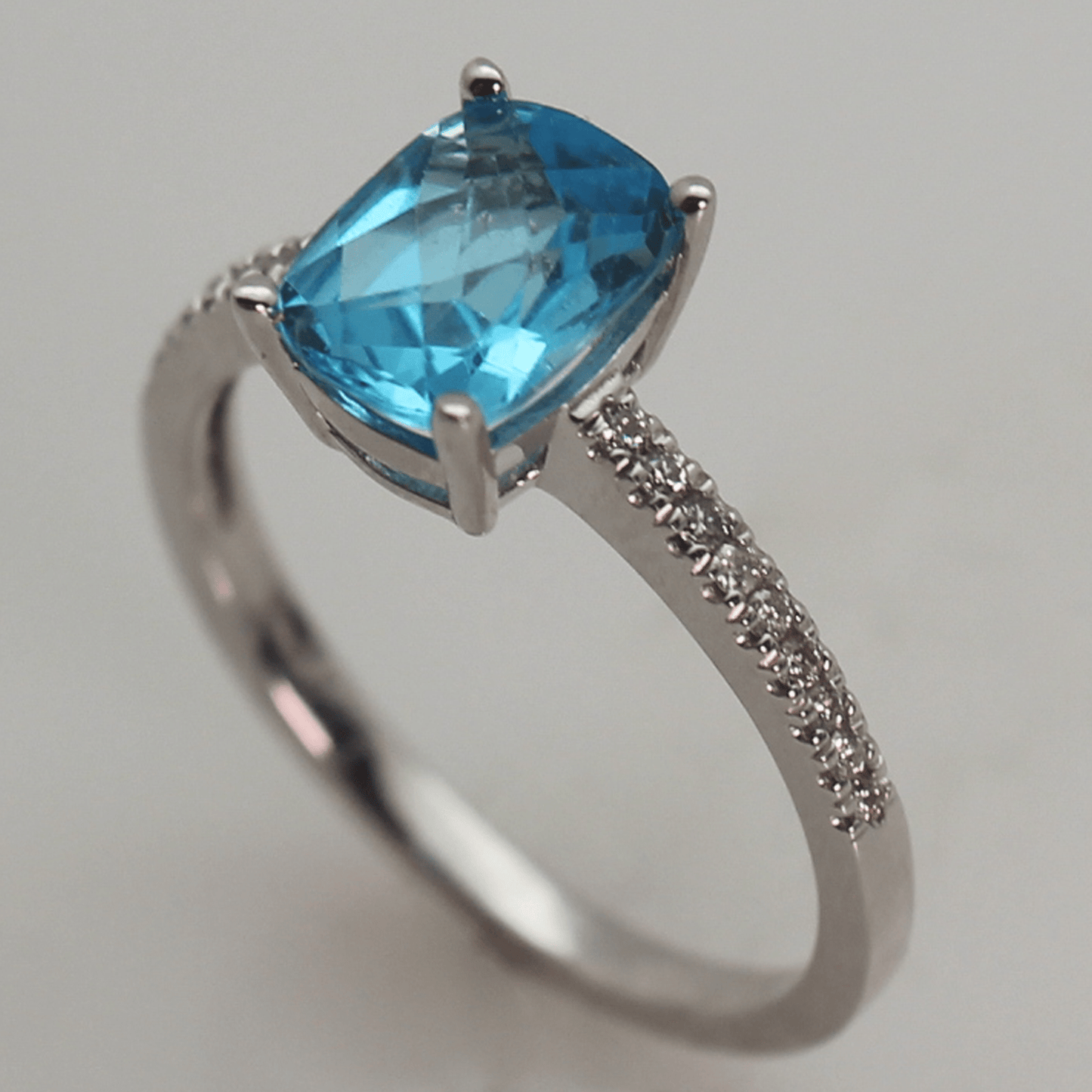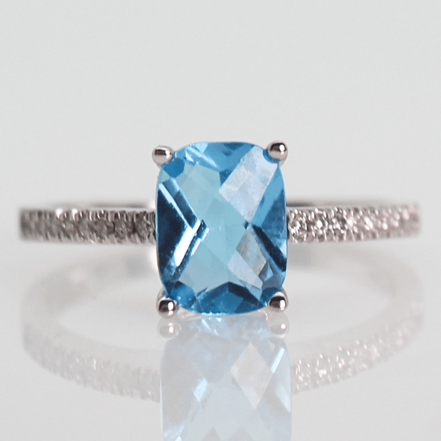 14K Blue Topaz Cushion Rectangular Diamond Ring
