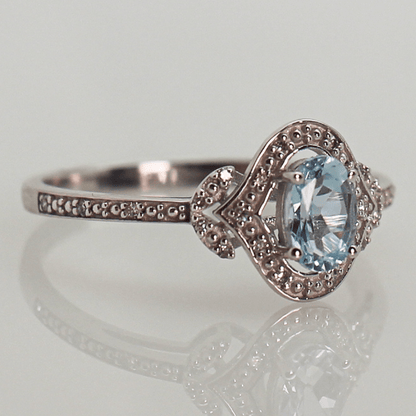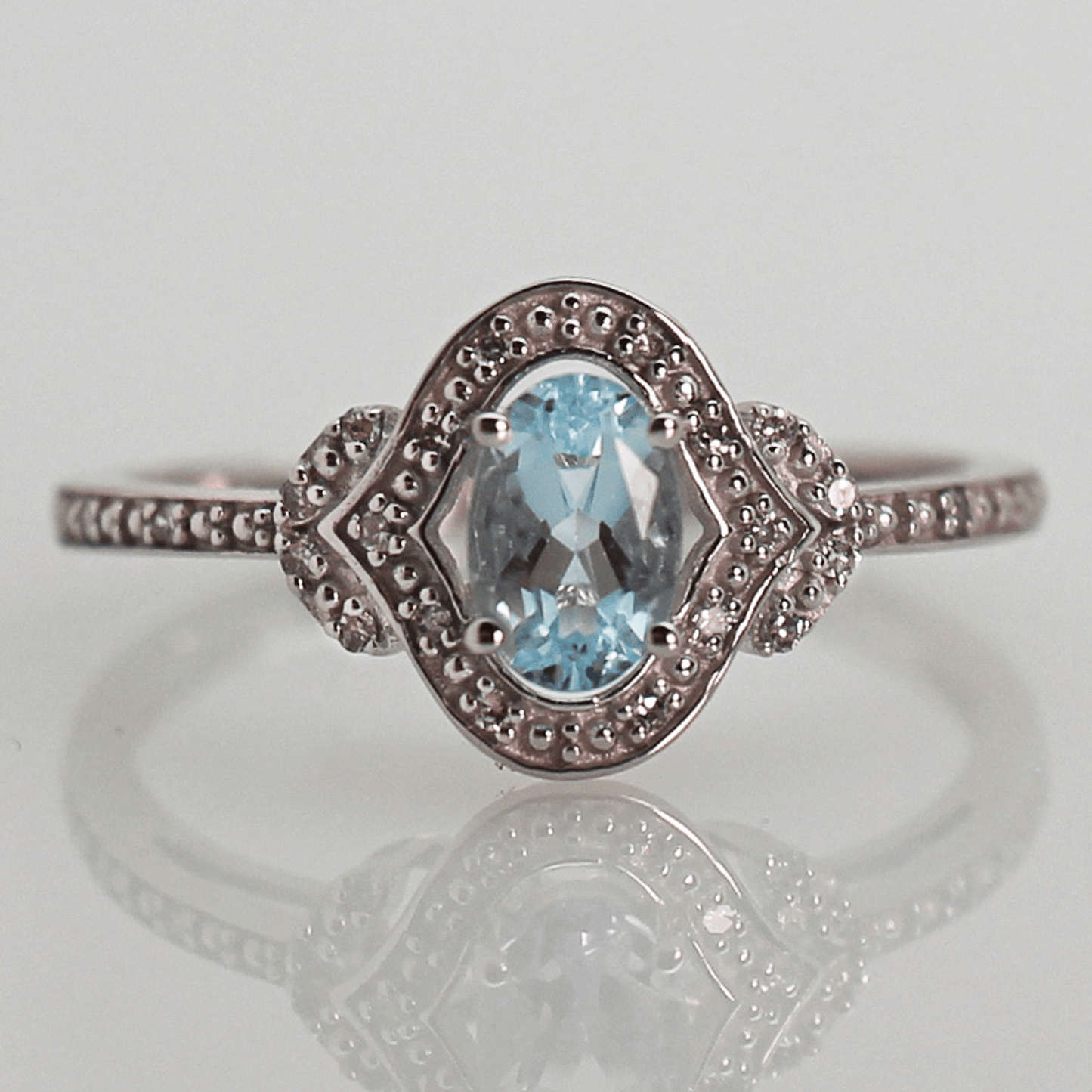 Discover the elegance of a 14KWG Oval Cut Aquamarine Ring. Crafted from 14 karat white gold, this ring showcases an exquisite oval-cut aquamarine that beautifully highlights the gemstone's vibrant color and brilliance. The cool blue tones of the aquamarine are perfectly complemented by the sophisticated white gold setting, creating a striking visual contrast. Beyond its aesthetic appeal, aquamarine is celebrated for its calming and soothing qualities, adding a layer of meaning to this stunning piece. Seize the chance to own this remarkable ring—make it yours today!