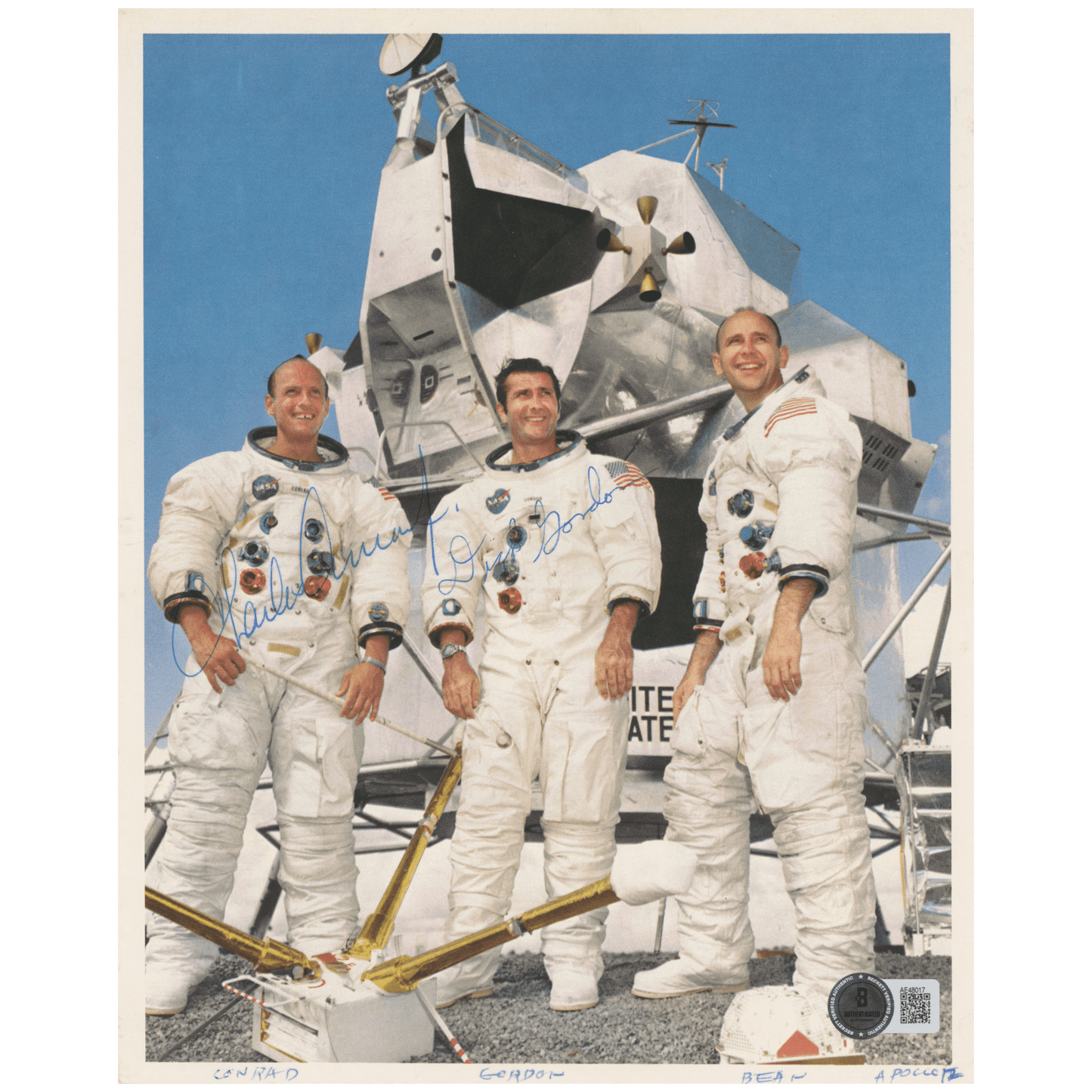 This signed photograph of Charles Conrad and Dick Gordon is a remarkable piece of history, featuring autographs that have been authenticated by Beckett and accompanied by a certification paper. The image commemorates the Apollo 12 mission, during which Conrad made his historic moon landing while Gordon orbited above. Due to the mission's significance and the prominence of these pioneering astronauts, this signed photo is highly coveted among collectors and space enthusiasts alike. Seize the chance to add this unique item to your collection today!