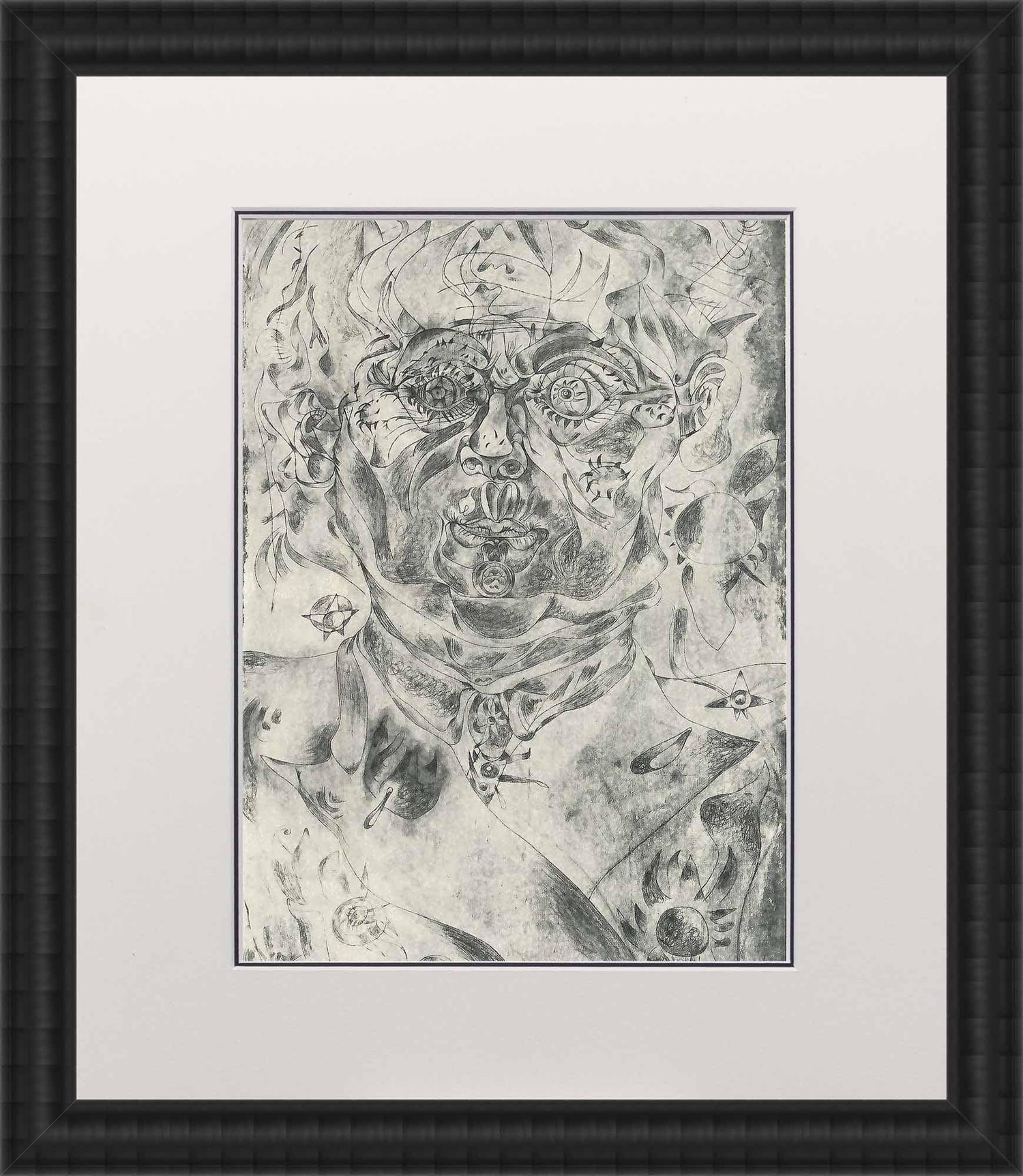 Joan Miró was born in Spain in 1893 and quickly had more of an interest in art than academics. After being forced into the business world by his parents, Miró had what can be characterized as a bit of a breakdown, and abandoned his business career and devoted himself to making art. He went on to study landscape and decorative art at the School of Industrial and Fine Arts in Barcelona. Early in his career, he primarily painted still-lifes, landscapes, and genre scenes. As he traveled, more contemporary influences interested the artist, such as Fauvism, Cubism, and Surrealism. He often used a limited palette, but the colors chosen were bold and expressive. Miró’s signature geometric shapes, biomorphic forms, and partially abstract objects are seen on many platforms in multimedia from engravings and ceramic pieces to large bronze installations as well as printmaking.