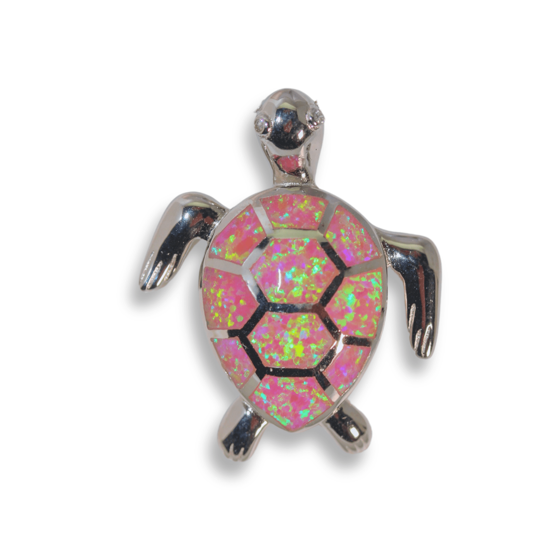 Sterling Silver Mosaic Opal Pink Sea Turtle Pendant Necklace